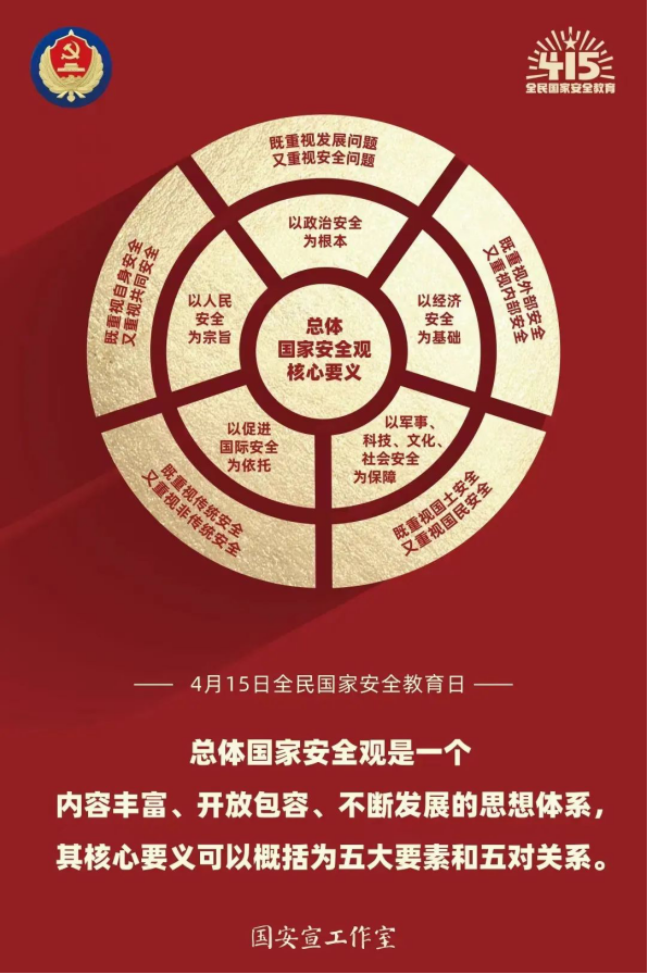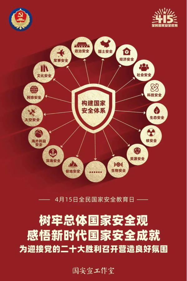 今年的4月15日是第七個(gè)全民國(guó)家安全教育日。今年的活動(dòng)主題是“樹(shù)牢總體國(guó)家安全觀,感悟新時(shí)代國(guó)家安全成就,為迎接黨的二十大勝利召開(kāi)營(yíng)造良好氛圍”。