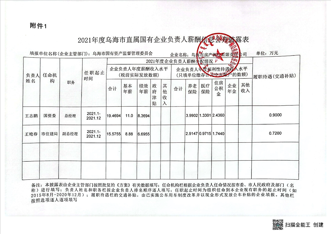 烏海市房產(chǎn)測繪有限責(zé)任公司2021年度企業(yè)負(fù)責(zé)人薪酬信息公開披露表