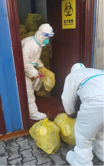 寒冬中有這樣一群人,他們?nèi)粘鐾須w,往返于三區(qū)各大醫(yī)院、隔離酒店、隔離卡點(diǎn)、傳染病醫(yī)院、發(fā)熱門(mén)診,穿梭在城區(qū)各大小區(qū),他們?nèi)蔽溲b,身著防護(hù)服,將一袋袋醫(yī)療廢物垃圾,安全轉(zhuǎn)運(yùn)到集中處置點(diǎn),徹底阻斷醫(yī)廢垃圾造成二次感染風(fēng)險(xiǎn),牢牢守住防疫最后一道防線。自從10月初以來(lái),市污水處理公司醫(yī)廢垃圾轉(zhuǎn)運(yùn)組全體工作人員以廠為家、閉環(huán)管理已經(jīng)40余天,他們放棄與家人團(tuán)聚,與親人相伴,日復(fù)一日,兩點(diǎn)一線,晝夜兼程,在醫(yī)廢垃圾安全轉(zhuǎn)運(yùn)戰(zhàn)場(chǎng)上默默付出,逆風(fēng)而行,用行動(dòng)為抗擊疫情、阻斷病毒傳播貢獻(xiàn)自己的力量。