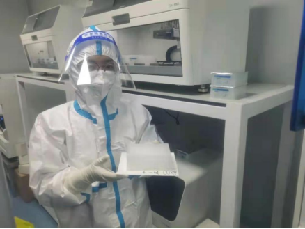 防護(hù)服、隔離衣、N95口罩、護(hù)目鏡、雙層手套、鞋套......全副武裝后,既不能喝水,也不能上廁所,在實(shí)驗(yàn)室里一待就是七八個(gè)小時(shí)。在這次檢驗(yàn)中,李寶華所在的二區(qū)樣品制備間每班四個(gè)人,流水線作業(yè),醫(yī)院檢驗(yàn)科的工作人員負(fù)責(zé)將標(biāo)本加入到提取試劑孔中,李寶華負(fù)責(zé)將樣本放在核酸提取儀里提取,然后將提取好的核酸交給下一位工作人員加入到八連排試管架中,然后四個(gè)人輪換的把八連管的蓋扣緊。在這個(gè)特別費(fèi)手指頭的環(huán)節(jié),每個(gè)人都要連扣幾板,按著按著手指痛的就按不動(dòng)了。看似簡(jiǎn)單的工作,卻要求全神貫注,一絲不茍,認(rèn)真的拆分、上架,同時(shí)要做好個(gè)人手衛(wèi)生,無數(shù)次重復(fù)的實(shí)驗(yàn),需要嚴(yán)謹(jǐn)細(xì)心的態(tài)度,確保實(shí)驗(yàn)結(jié)果準(zhǔn)確無誤。一天工作下來,滿身是汗,耳朵也被口罩壓出紅印子,面部也有深深的壓痕。雖然核酸檢測(cè)工作很艱辛,李寶華卻無悔加入到這支平凡而不普通的隊(duì)伍。防疫戰(zhàn)線上,無論是下沉小區(qū)值守的“守衛(wèi)者”,還是核酸檢測(cè)的“掃雷員”,都都抗議路上逆行孤勇者,他們用點(diǎn)點(diǎn)微光,匯聚起戰(zhàn)勝疫情的強(qiáng)大力量。我們向他(她)們致敬,感謝他們的每一份付出。