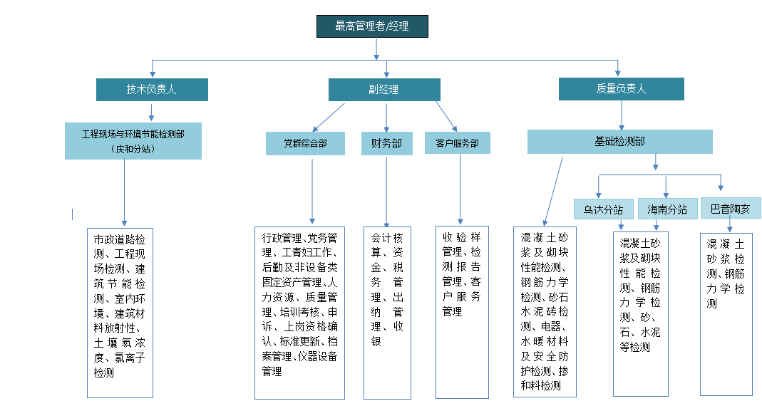 公司現(xiàn)設(shè)5個(gè)部門,分別為黨群綜合部、財(cái)務(wù)部、客戶服務(wù)部、基礎(chǔ)檢測(cè)部、工程現(xiàn)場(chǎng)及環(huán)境節(jié)能檢測(cè)部。公司現(xiàn)有員工38人,其中本科學(xué)歷31人、大專學(xué)歷2人、大專以下5人;二級(jí)注冊(cè)結(jié)構(gòu)工程師1名,高級(jí)職稱7名,中級(jí)職稱10名,初級(jí)職稱13名。