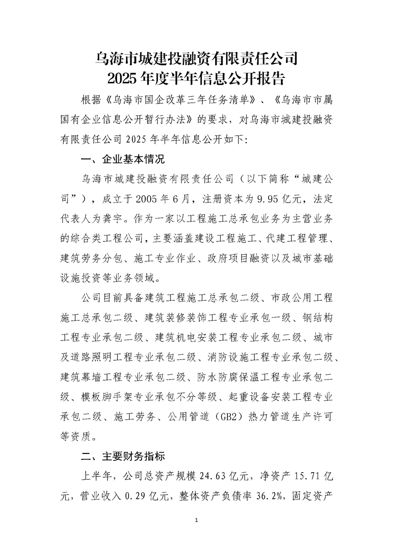 - 2025-10-22烏海市城建投融資有限責任公司2025年度第三季度信息公開