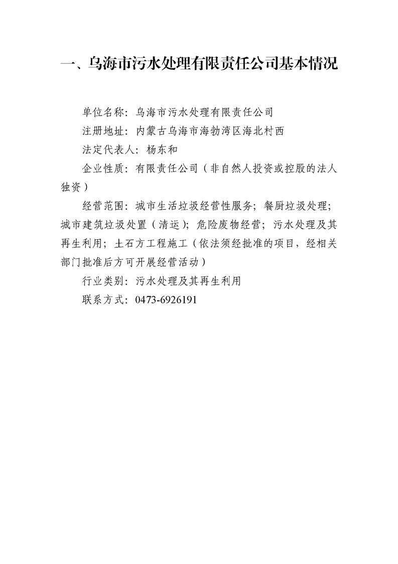 - 2025-04-10烏海市污水處理有限責(zé)任公司2024年度信息公開報(bào)告