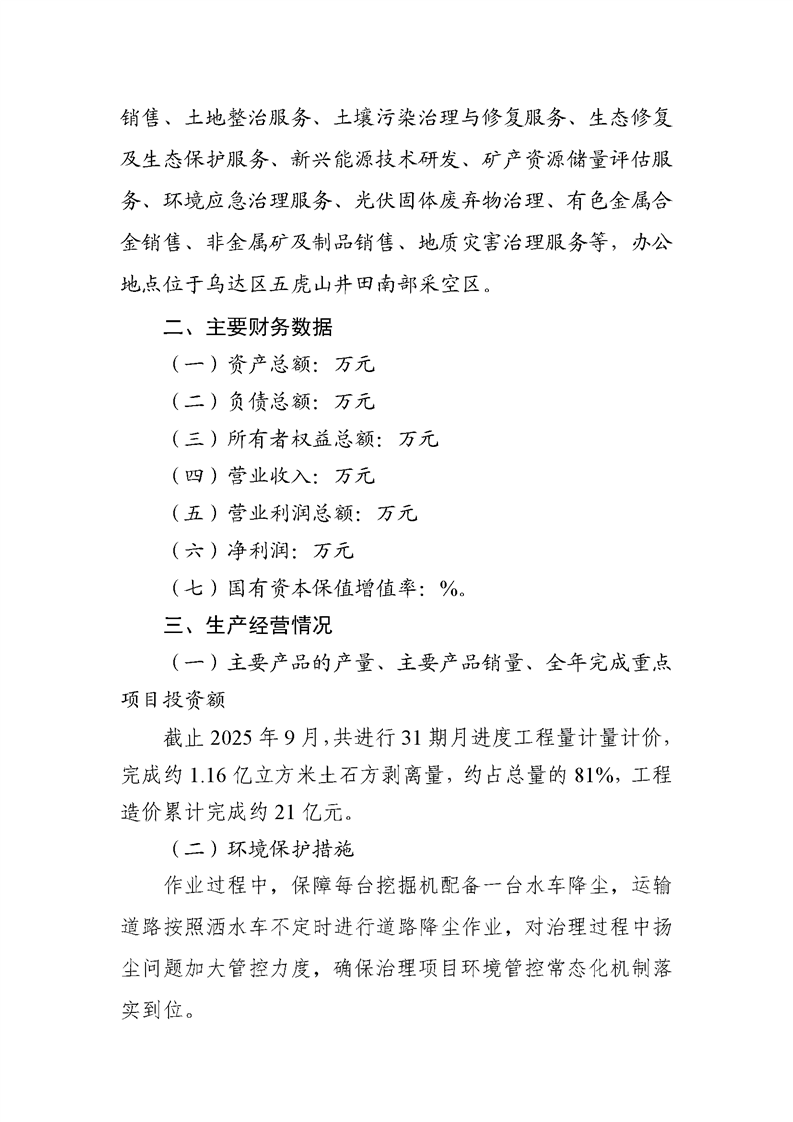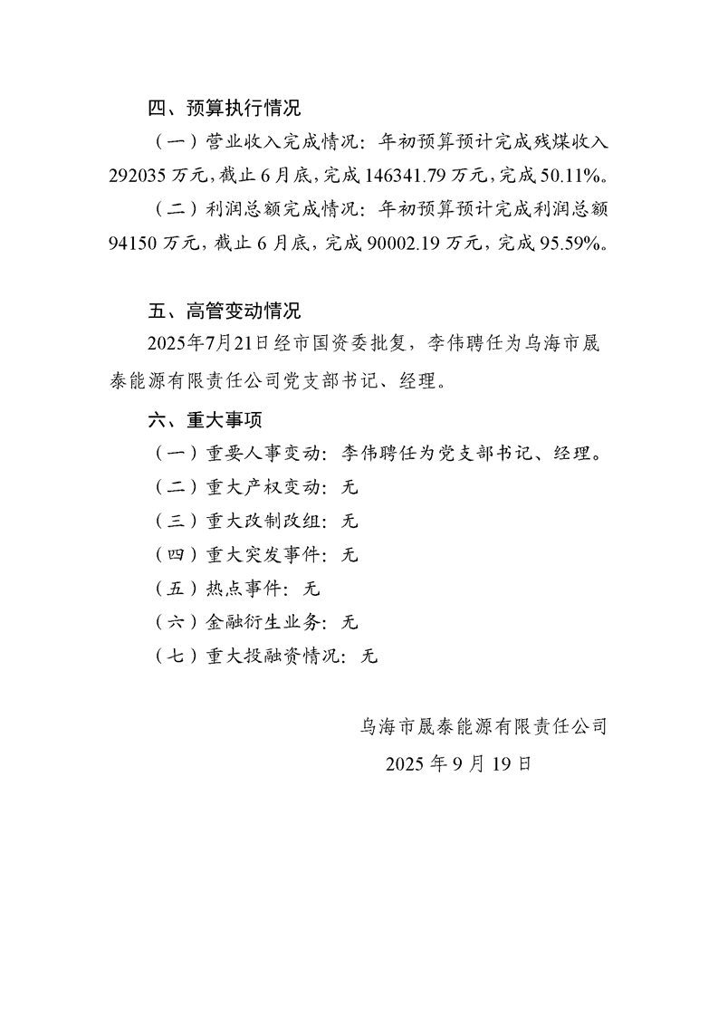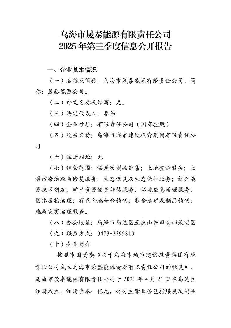 烏海市晟泰能源有限責(zé)任公司2025年第三季度信息公開(kāi)報(bào)告
