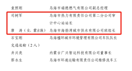 9月1日,中共烏海市委員會發(fā)布《烏海市委、市人民政府關于表彰烏海市勞動模范和先進工作者的決定》,其中城投集團公司四名職工郎琳、王麗英、司樹軍、唐濤被授予“烏海市勞動模范”稱號。