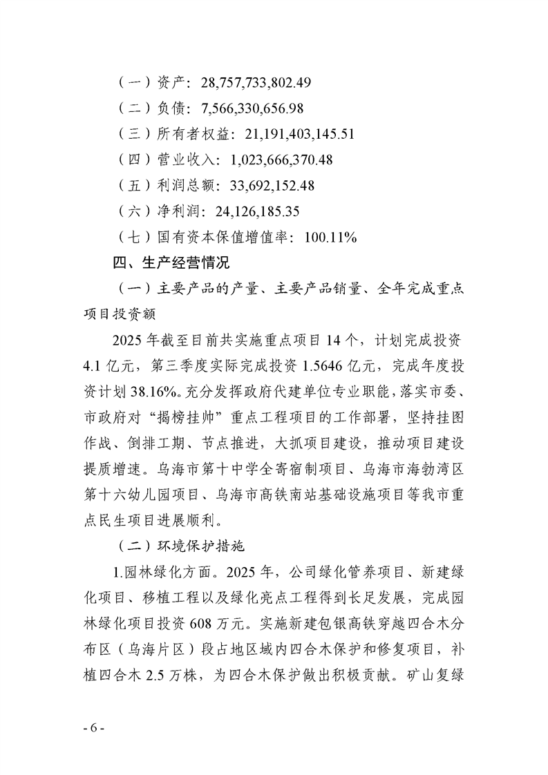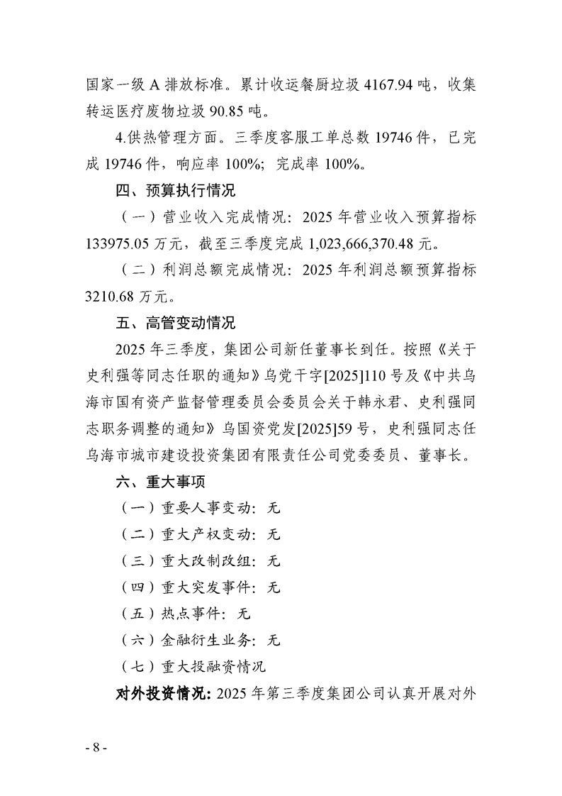 烏海市城市建設(shè)投資集團(tuán)有限責(zé)任公司 2025年度第三季度信息公開報(bào)告