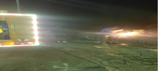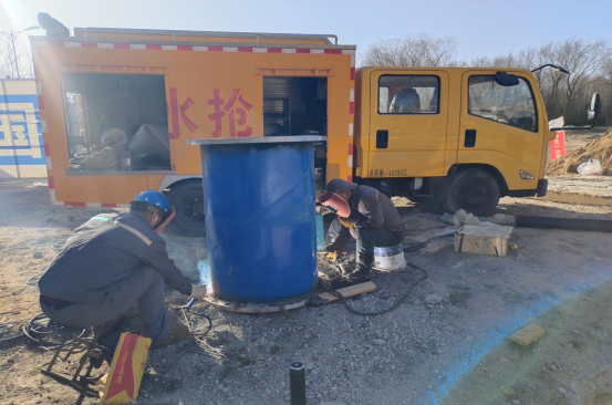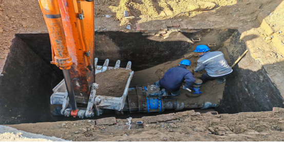 電焊組的師傅們頭戴面罩,手持焊槍,瞬間火花四濺,在黑暗中綻放出奪目光芒,熟練地進行切割與焊接工作,其他人員則全力投入到拆卸工作中,他們齊心協(xié)力,將DN800蝶閥、DN800鑄鐵乙管、三通、伸縮器等部件逐一拆卸。盡管汗水濕透了衣衫,雙手被工具磨出了水泡,但沒有一個人喊累,所有人的目光都堅定地聚焦在搶修任務上。